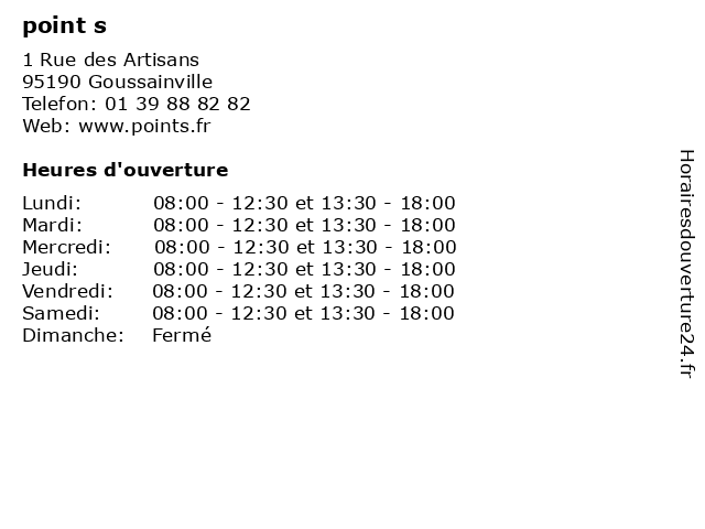 | Samedi | 08:00-12:30 et 13:30-18:00 |