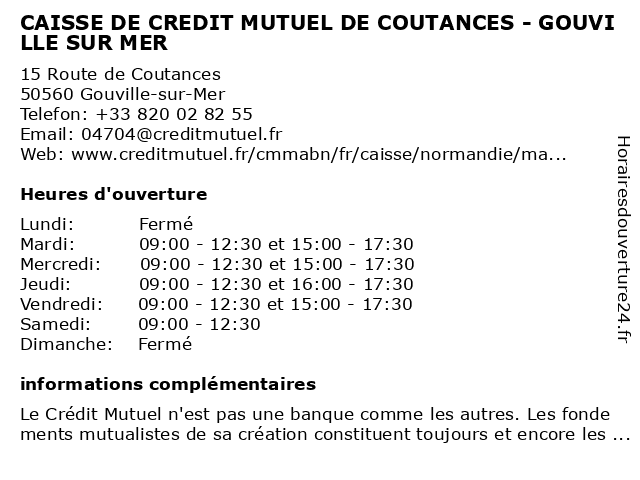 Termes de recherche pour CAISSE DE CREDIT MUTUEL DE COUTANCES - GOUVILLE SUR MER:sur, mer, de, coutances, crédit, mutuel, caisse, gouville |
