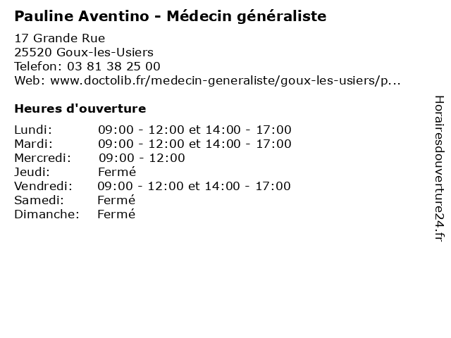 | Lundi | 09:00-12:00 et 14:00-17:00 |