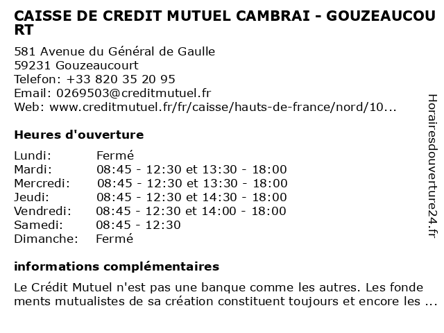 Termes de recherche pour CAISSE DE CREDIT MUTUEL CAMBRAI - GOUZEAUCOURT:de, cambrai, crédit, mutuel, caisse, gouzeaucourt |