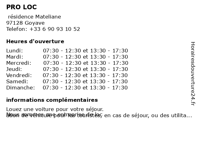 | Lundi | 07:30-12:30 et 13:30-17:30 |