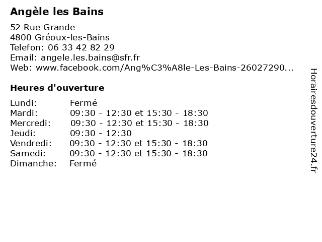 | Lundi | Fermé |