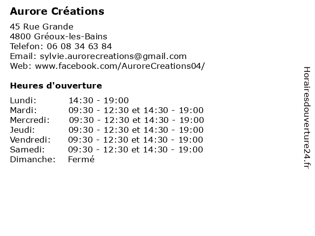 | Mardi | 09:30-12:30 et 14:30-19:00 |