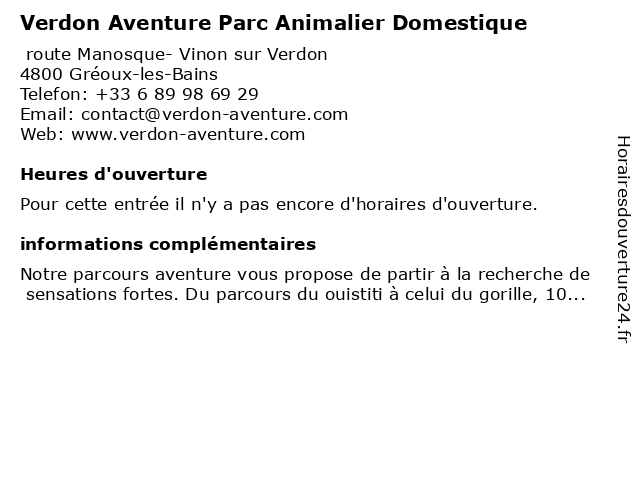| Appeler Verdon Aventure Parc Animalier Domestique | |