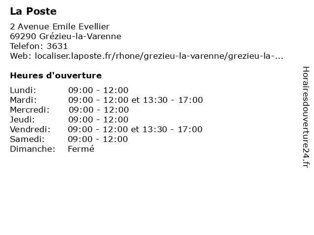 1 La Poste (Distance: 0,06 km) 1 Place des anciens combattants, 69290 Pollionnay la, la poste, pollionnay, poste 2 La Poste (Distance: 2,46 km) 3 place Charles de Gaulle, 43500 Craponne-sur-Arzon agence, assurance, banque, banque postale, bureau de poste, chronopost, colis, courrier, dps, expéditions internationales, la, point, postale, poste, relais, timbres, téléphonie, ups, western union 3 La Poste (Distance: 3,12 km) - Place des Marronniers, 69126 Brindas agence postale, courrier postal, expédition internationale, la, poste 4 La Poste (Distance: 4,12 km) 794 Avenue jean colomb, 69280 Marcy l'etoile la, la poste, marcy l'etoile, poste 5 La Poste (Distance: 5,04 km) 1 Rue de la Chapelle de Bel Air, 69340 Francheville agence, colis, courriers, expédition, la, postale, poste, relais 6 La Poste (Distance: 5,71 km) 76 Grande Rue, 69340 Francheville agence postale, courrier postal, expédition internationale, la, poste |