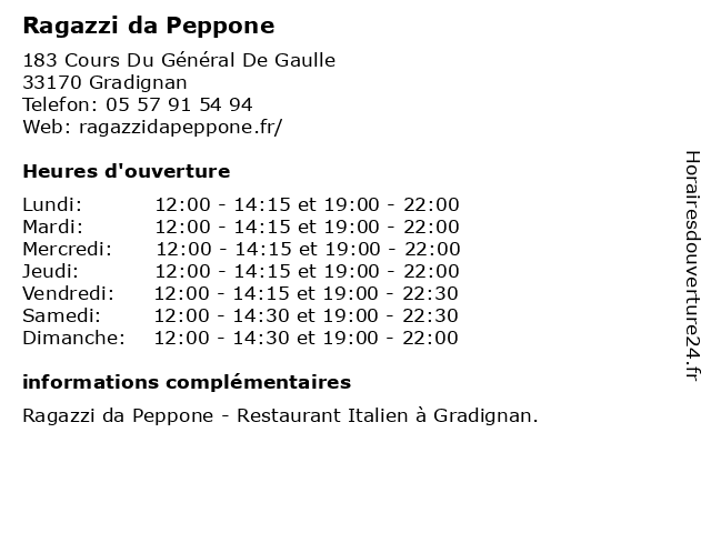| Dimanche | 12:00-14:30 et 19:00-22:00 |