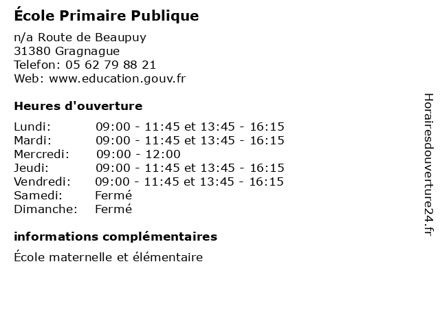 1 École Primaire Publique (Distance: 4,13 km) . Rue des Écoles, 31280 Mons cours, education, primaire, publique, services, école 2 École Primaire Publique (Distance: 10,03 km) 3 Avenue de la Mairie, 31650 Lauzerville cours, education, primaire, publique, services, école 3 École Primaire Publique (Distance: 13,04 km) . Chemin des Prés, 31700 Blagnac cours, education, primaire, publique, services, école 4 École Primaire Publique (Distance: 13,11 km) . Rue de l'École, 31380 Azas cours, education, primaire, publique, services, école 5 École Primaire Publique (Distance: 13,78 km) - Allée de la Mairie, 31570 Bourg-Saint-Bernard cours, education, primaire, publique, services, école 6 École Primaire Publique (Distance: 15,30 km) 3 Place Germain Goussis, 31320 Pechbusque cours, education, primaire, publique, services, école |