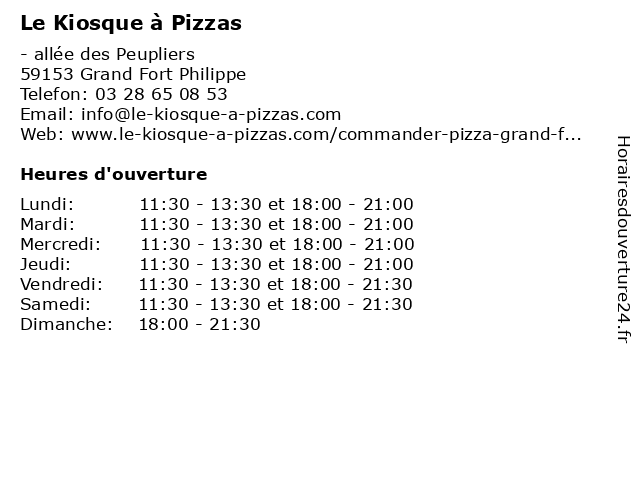 | Mardi | 11:30-13:30 et 18:00-21:00 |