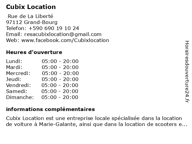 | Vendredi | 05:00-20:00 |