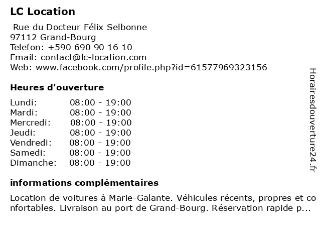 | Lundi | 08:00-19:00 |
