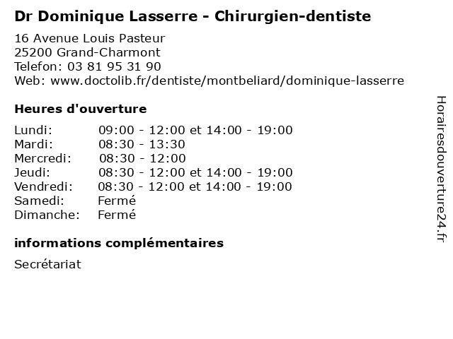 | Lundi | 09:00-12:00 et 14:00-19:00 |