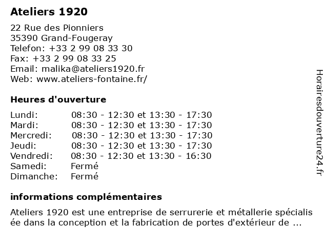 | Lundi | 08:30-12:30 et 13:30-17:30 |