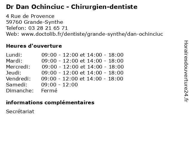 | Lundi | 09:00-12:00 et 14:00-18:00 |