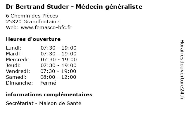 | Mercredi | 07:30-19:00 |