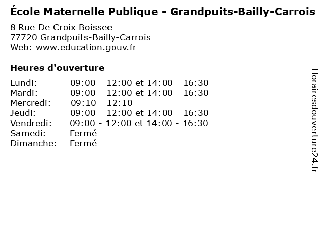 | Mardi | 09:00-12:00 et 14:00-16:30 |