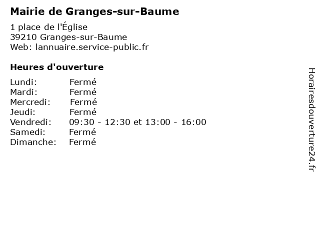 | Vendredi | 09:30-12:30 et 13:00-16:00 |