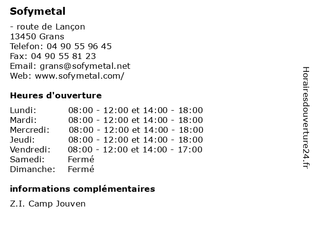 Lundi | 08:00-12:00 et 14:00-18:00 |