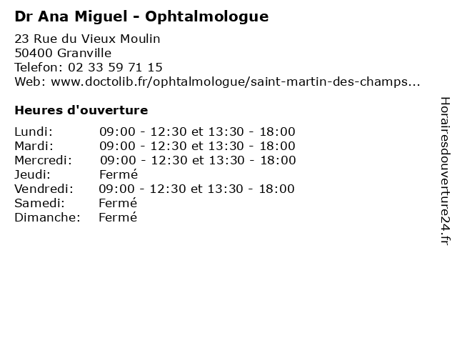 | Mercredi | 09:00-12:30 et 13:30-18:00 |