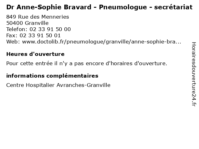 | Appeler Dr Anne-Sophie Bravard - Pneumologue - secrétariat | |