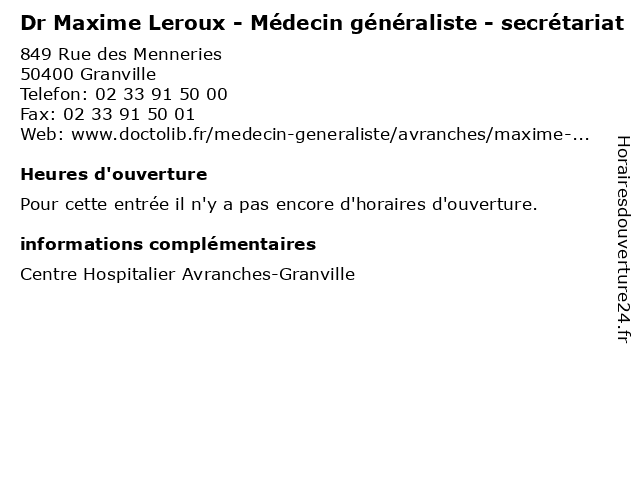 | Appeler Dr Maxime Leroux - Médecin généraliste - secrétariat | |