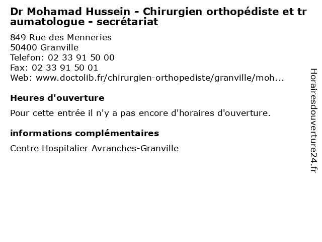 | Appeler Dr Mohamad Hussein - Chirurgien orthopédiste et traumatologue - secrétariat | |