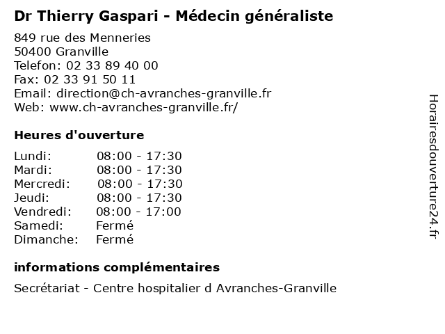 1 Dr Thierry Pieters - Médecin généraliste (Distance: 1,12 km) 43 Ancienne Route de Villedieu, 50400 Granville consultation, docteur, dr, générale, généraliste, médecin, médecine, pieters, santé, thierry 2 Sarl Thierry Leroux (Distance: 2,25 km) 28 Rue De Guernesey, 50380 Saint Pair Sur Mer accessories, auto, entretien, leroux, mécanique automobiles, sarl, thierry, top garage 4 Leroux Thierry (Distance: 11,68 km) 52 Avenue Maréchal Leclerc, 50530 Saint-Jean-le-Thomas leroux, thierry 6 Dr Armelle Gros de Beller - Médecin généraliste - secrétariat (Distance: 0,00 km) 849 Rue des Menneries, 50400 Granville armelle, beller, de, dr, gros, généraliste, médecin, médecins, médicaments, santé, secrétariat, spécialiste |