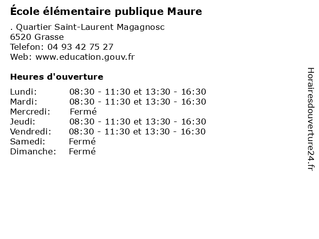 Lundi | 08:30-11:30 et 13:30-16:30 |