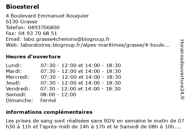 | Lundi | 07:30-12:00 et 14:00-18:30 |