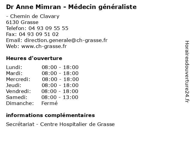 1 Anne-Cécile Prouts - Sage-femme (Distance: 0,00 km) - Chemin de Clavary, 06130 Grasse anne, cecile, consultation, cécile, docteur, femme, med, medecine, medical, médecin, prouts, sage, traitement 2 Dr Anne Faisant de Champchesnel - Médecin généraliste (Distance: 0,00 km) - Chemin de Clavary, 06130 Grasse anne, champchesnel, consultation, de, docteur, dr, faisant, généraliste, med, medecine, medical, médecin, traitement 3 Dr Anne-Sophie Azuar - Gynécologue obstétricienne (Distance: 0,38 km) 28 Chemin de Clavary, 06130 Grasse anne, azuar, consultation, docteur, dr, gynécologue, med, médecin, médecine, obstétricienne, sophie, traitement 4 Anne-Laure Campana - Sage-femme (Distance: 2,59 km) 56 chemin des Bastides, 06130 Grasse anne, campana, consultation, contraception, femme, grossesse, laure, naissance, pilule, rééducation périnée, sage, soin, stérilet 5 Dr Anne Molineri - Médecin généraliste (Distance: 3,37 km) 5 Place du Général de Gaulle, 06370 Mouans-Sartoux anne, docteur, dr, generaliste, généraliste, medecin, molineri, médecin, soins 6 Anne Sans - Masseur-kinésithérapeute (Distance: 3,68 km) 775 avenue de la Plaine, 06250 Mougins anne, balnéothérapie, consultation, docteur, drainage lymphatique, kinésithérapeute, massage, masseur, médecin, posturologie, pressothérapie, rééducation, sans, soin |