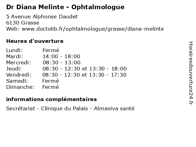 | Jeudi | 08:30-12:30 et 13:30-18:00 |