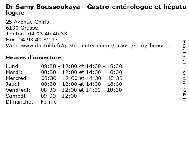 | Lundi | 08:30-12:00 et 14:30-18:30 |