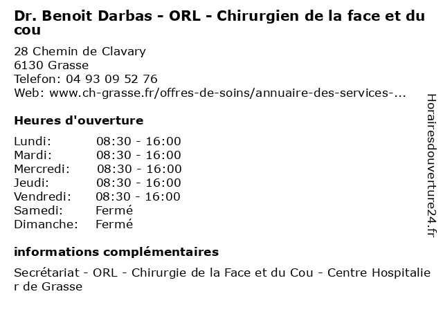 | Mercredi | 08:30-16:00 |