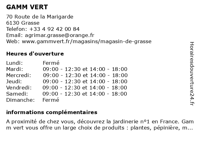 | Samedi | 09:00-12:30 et 14:00-18:00 |