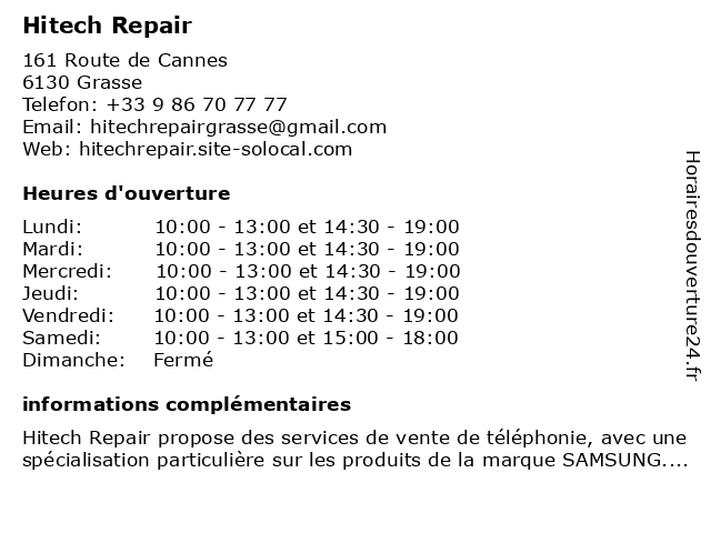 | Lundi | 10:00-13:00 et 14:30-19:00 |