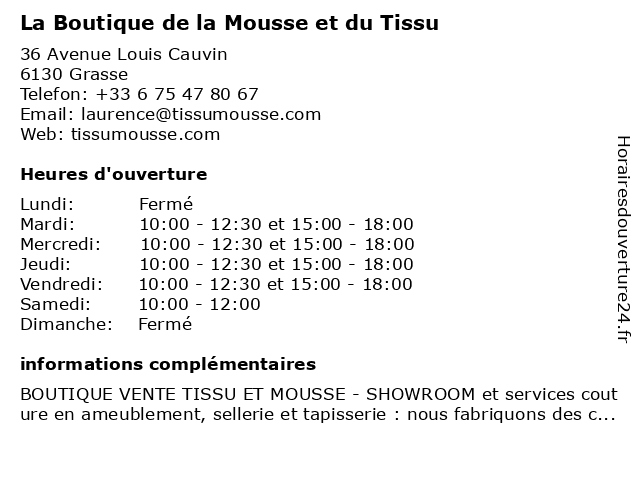 | Mardi | 10:00-12:30 et 15:00-18:00 |