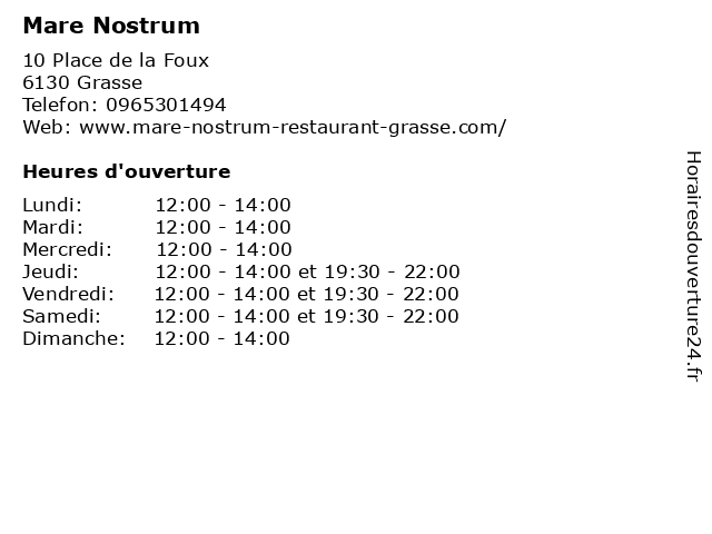 | Samedi | 12:00-14:00 et 19:30-22:00 |