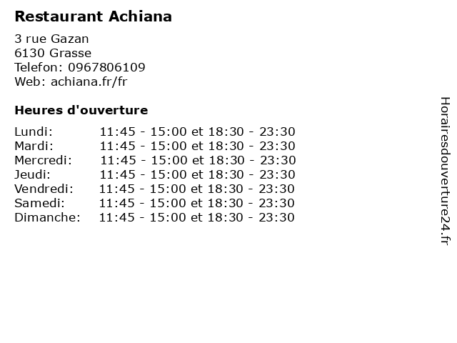 | Lundi | 11:45-15:00 et 18:30-23:30 |