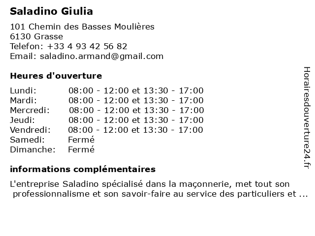 | Lundi | 08:00-12:00 et 13:30-17:00 |