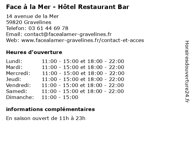 | Mardi | 11:00-15:00 et 18:00-22:00 |