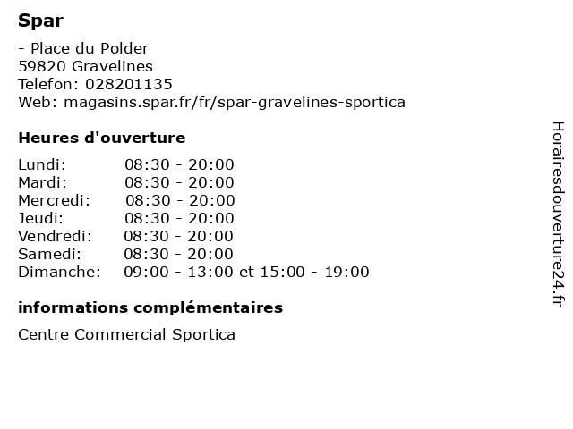 1 Spar (Distance: 1,90 km) 2/4 Avenue Pasteur, 59820 Gravelines alimentation, légumes et de fruits, spar, épicerie 2 Spar (Distance: 3,31 km) - Zac Polder, 59820 Gravelines commerce, service, spar, supermarché, vente, épicerie 3 Spar (Distance: 12,22 km) - Place du Courghain, 59792 Grande-Synthe alimentation, légumes et de fruits, spar, épicerie 4 Spar (Distance: 14,11 km) 110 Rue de Fort Mardyck, 59430 Fort-Mardyck alimentation, légumes et de fruits, spar, épicerie 5 Spar (Distance: 18,63 km) 96 Rue Henri Ghesquière, 59210 Coudekerque-Branche alimentation, commerce, service, spar, supermarché, vente, épicerie 6 SPAR (Distance: 20,81 km) 71 RUE MARGATE, 59240 Dunkerque alimentation, légumes et de fruits, spar, épicerie |