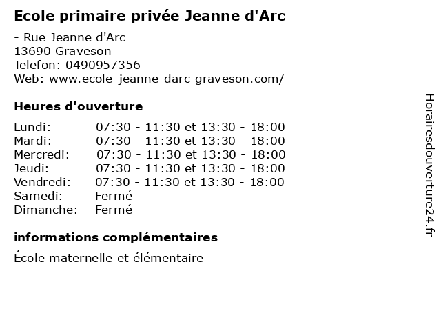 | Vendredi | 07:30-11:30 et 13:30-18:00 |