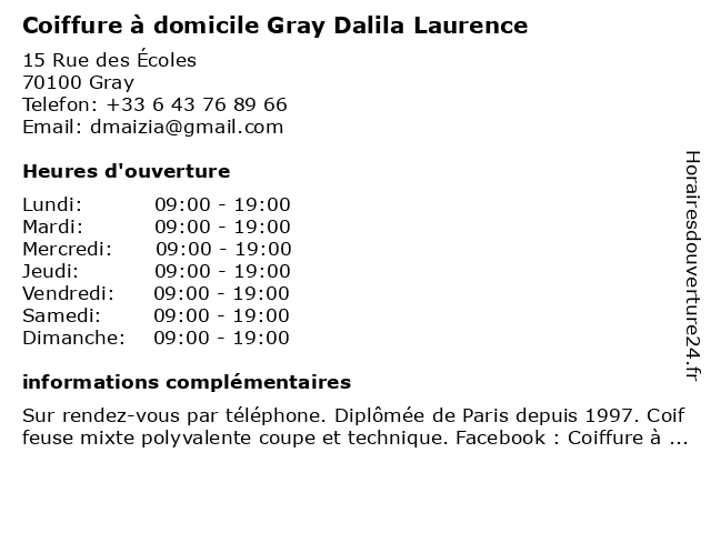 Termes de recherche pour Coiffure à domicile Gray Dalila Laurence:gray, coiffure, domicile, laurence, dalila |