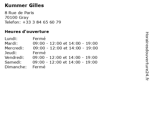 | Mercredi | 09:00-12:00 et 14:00-19:00 |