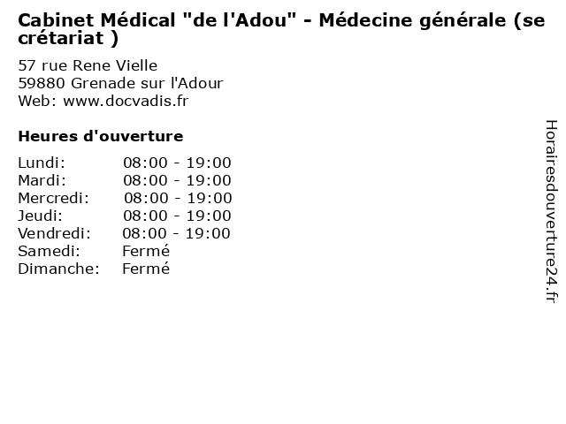 Termes de recherche pour Cabinet Médical "de l'Adou" - Médecine générale (secrétariat ):cabinet, générale, medecine, santé, medical, secretariat, docteur, consultation, "de, l'adou" |