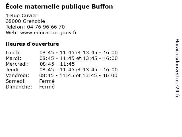 | Lundi | 08:45-11:45 et 13:45-16:00 |