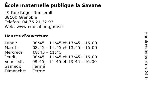 | Lundi | 08:45-11:45 et 13:45-16:00 |