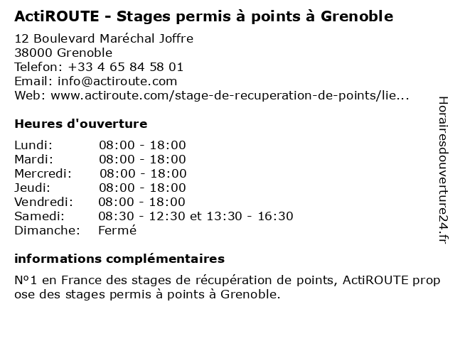 | Samedi | 08:30-12:30 et 13:30-16:30 |