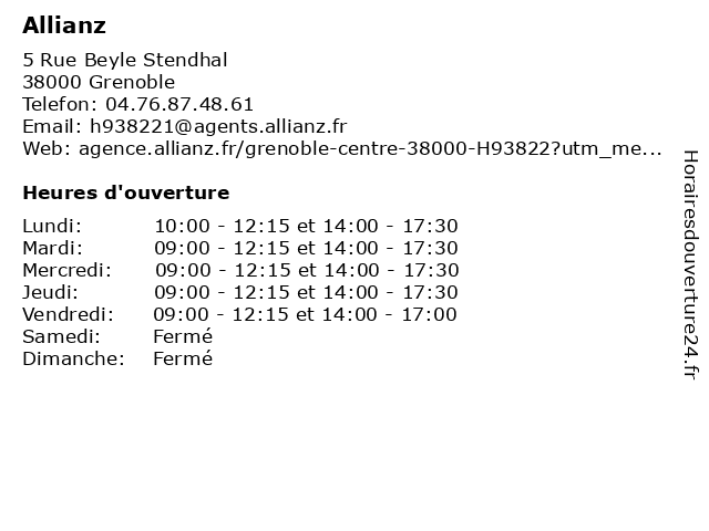 1 Allianz (Distance: 0,43 km) 12 Rue Lafayette, 38000 Grenoble allianz, assurance prêt, assurances, services 2 Allianz (Distance: 0,60 km) 26 Avenue Albert 1er de Belgique, 38000 Grenoble agence, allianz, assurances, vehicules 5 Allianz (Distance: 2,40 km) 2 Avenue Jean Perrot, 38100 Grenoble allianz, assurance prêt, assurances, services 6 Allianz (Distance: 2,75 km) 64 Ter Avenue de la République, 38170 Seyssinet-Pariset agence, allianz, assurances |