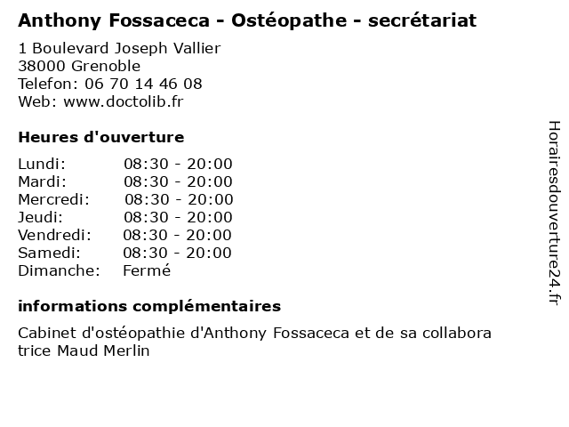 | Samedi | 08:30-20:00 |