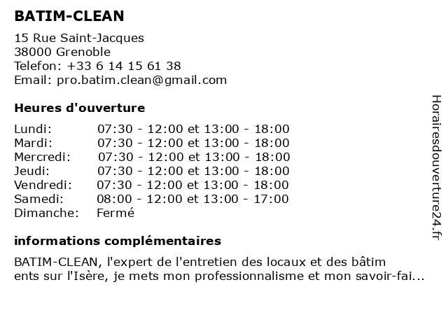 | Lundi | 07:30-12:00 et 13:00-18:00 |